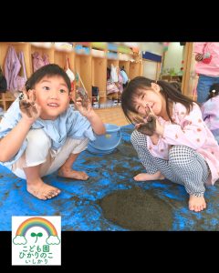 制作が終わった後は、お部屋の中で砂あそび‼️