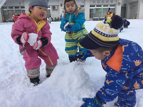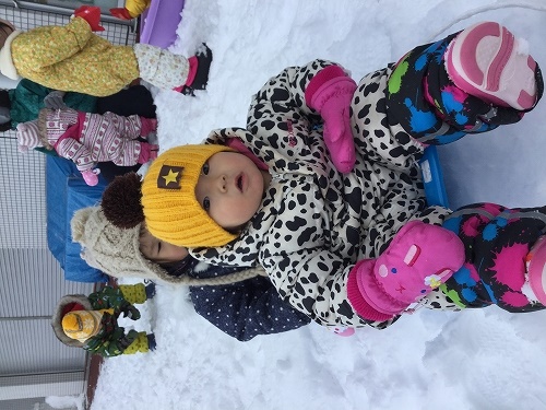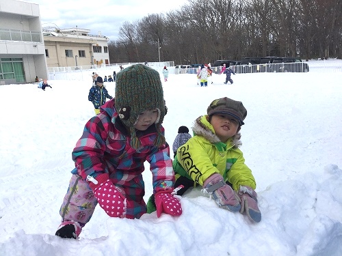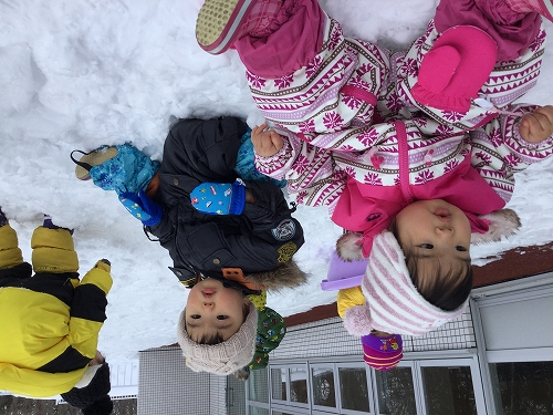 ソリ遊びやお友だちと雪だるま作りを楽しんでいましたよ