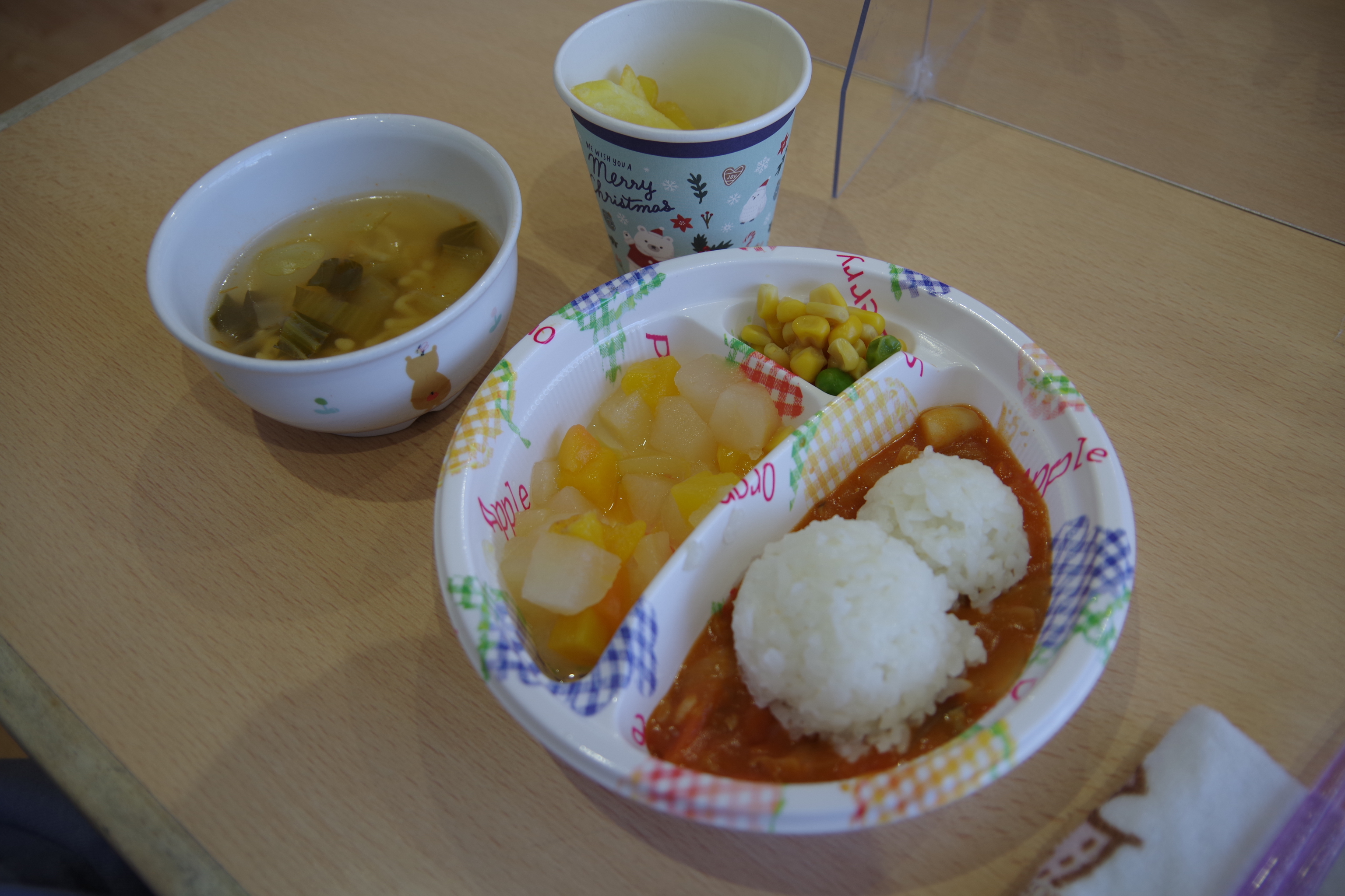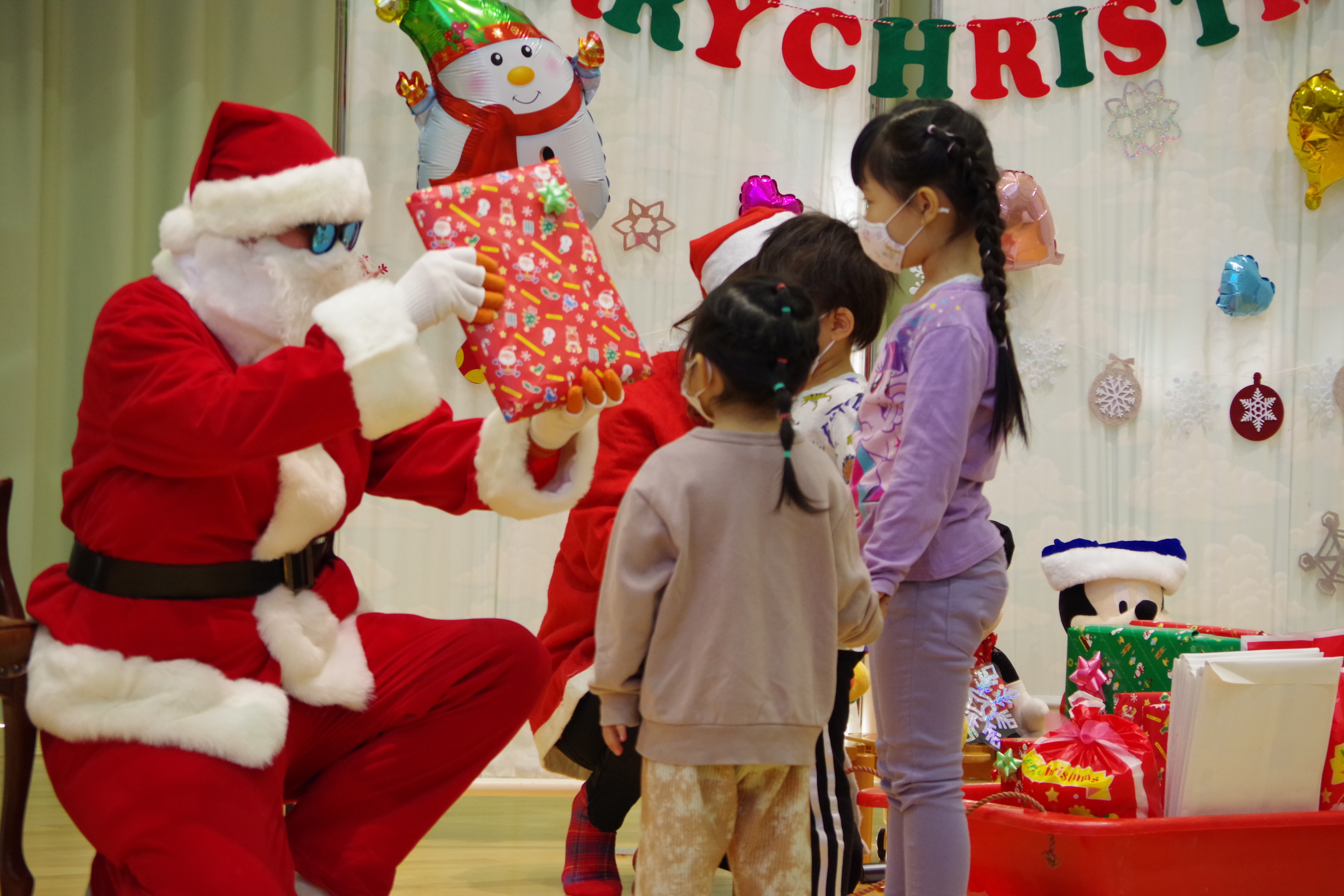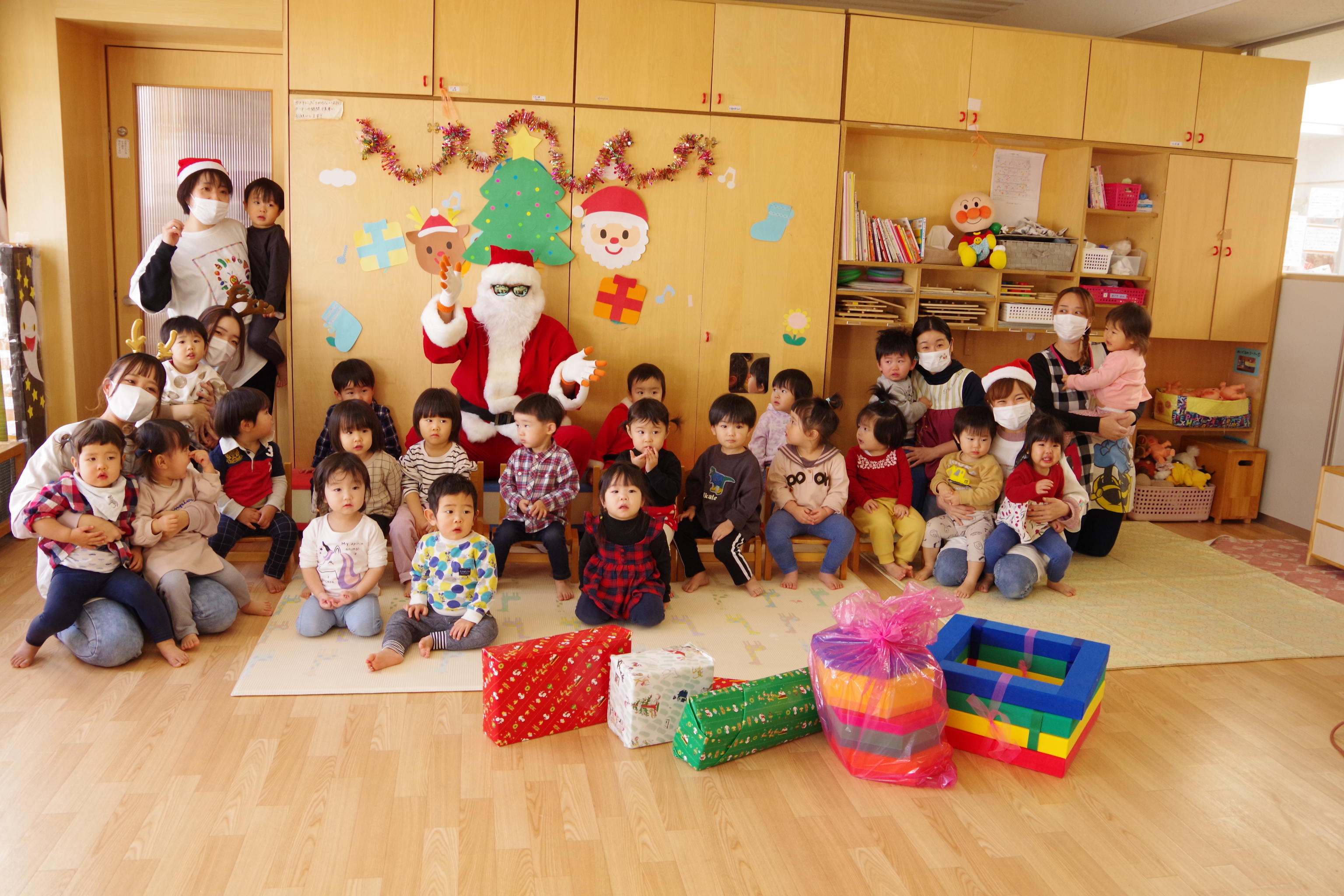 み~んなが、とっても楽しみにしていたクリスマス会がありました🎄 サンタさんからの手紙✉が届き、「サンタさん来るかな?」とドキドキわくわくしながら、首を長~くして待っていた子ども達。 小さいクラスのお友だちは、ビックリしてちょっぴり泣いてしまうこともあったけれど、プレゼント🎁を貰うとニコニコでした😊 ホールに集まった幼児クラスのお友だち。 どこからサンタさんが来るのか、ドキドキそわそわ… ホール後ろの扉からサンタさんが登場すると「やったー❕サンタさんだー❕」と立ち上がって大喜びでした😂 給食には、雪だるまのハヤシライスが登場⛄ おやつにはイチゴが乗ったケーキもありました🍰 サンタさんたくさんのプレゼントをありがとう💕