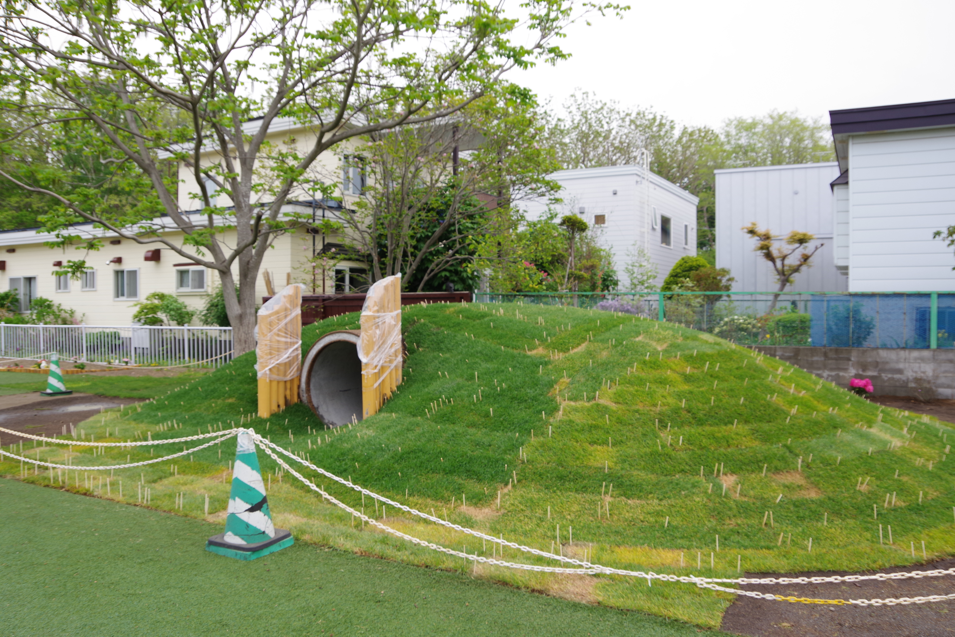 昨年完成した築山には、天然芝を敷きました👏