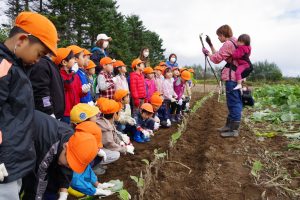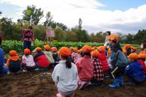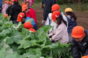 みんなで元気に挨拶をしてから、収穫の仕方を教えてもらい、いざ挑戦!!