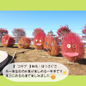 用務員さんが育ててくれたでコキアが見ごろを迎えたので記念撮影📸
