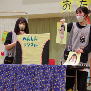 幼児クラスでは、絵本❝へんしんトンネル❞の出し物でお祝い👏