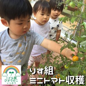 2歳児りす組は、お部屋の前にあるテラスでミニトマト