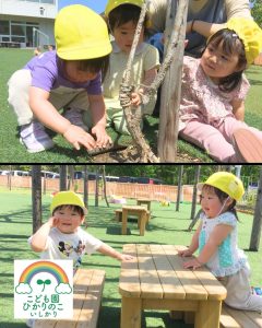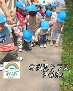 2026年03月 未満児クラス 外遊び 少しずつ暖かい日が増えてきましたね🌷 1歳児・2歳児クラスでもお散歩に行ったり、園庭で遊んだりと、ちょっぴり自然に触れながら春を感じています🎵 → @hikarinoko_ishikari ←