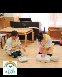 万が一の緊急時にも対応できるよう、職員も講習を受けて勉強💪