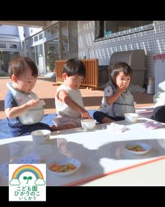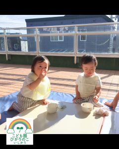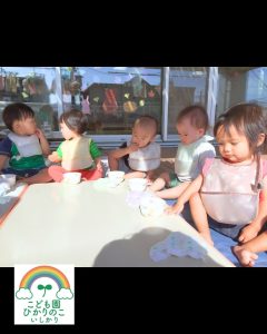 2025年09月 0歳児クラス テラスでおやつを食べました🎵