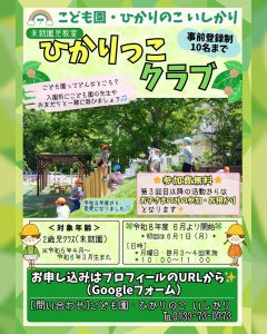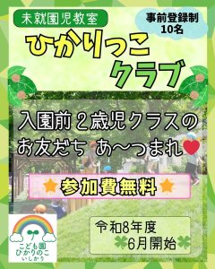 令和8年度の未就園児教室【ひかりっこクラブ】が6月からスタートします✨👏