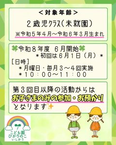 ✅ 対象年齢:2歳児クラス(未就園) ※令和5年4月〜令和6年3月生まれのお子さま