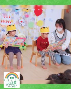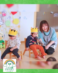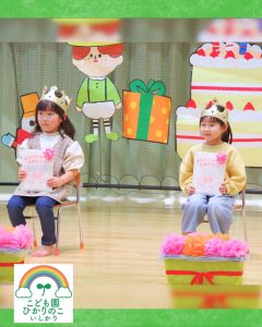 冠をかぶって登場した誕生日のお友だち👑 先生からのインタビューにドキドキしながらも「○歳になりました!!」と答える姿に、大きな成長を感じました✨