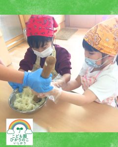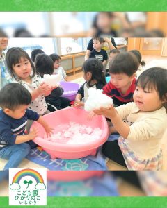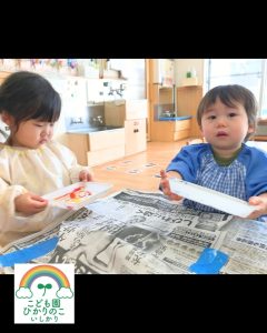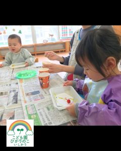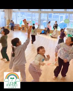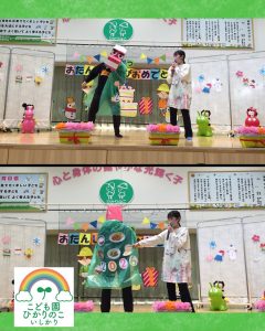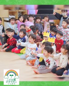 1月は新年の始まり!!ということで、お祝いに「獅子舞」も駆けつけてくれました😲 獅子舞の背中には、みんなが楽しみにしていた誕生会の会食メニューが💓 「見て見て!」と、子どもたちも大興奮で指をさして喜んでいました☺