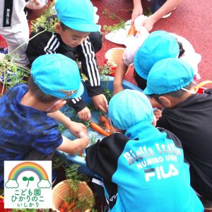 園舎屋上の❝ひかりのこファーム❞に植えた❝ベビーキャロット❞を収穫しました🥕