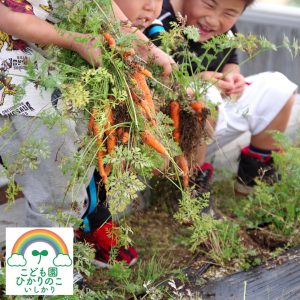園舎屋上の❝ひかりのこファーム❞に植えた❝ベビーキャロット❞を収穫しました🥕