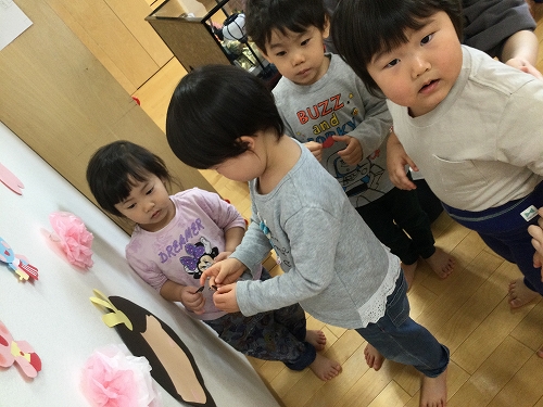 目や口をみんなで貼って、可愛くなりましたよ(#^.^#)