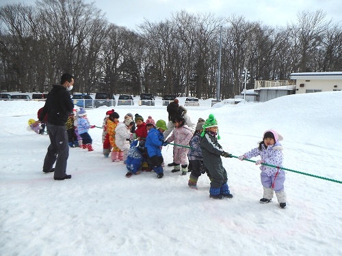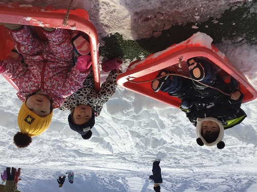 ソリ遊びやお友だちと雪だるま作りを楽しんでいましたよ