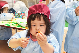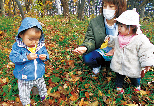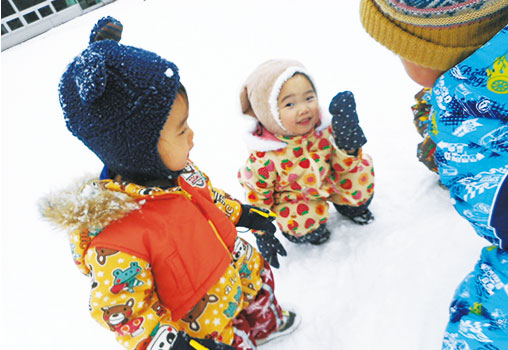 季節の味や景色、においや音など自然には「五感」を育む「ちから」があふれています。春は「ぽかぽかお散歩に」夏は「チャプチャプ水遊び」秋は「もぐもぐ食いしん坊」冬は「キラキラ雪遊び」。その季節ならではの自然を全身で感じながら楽しみます。