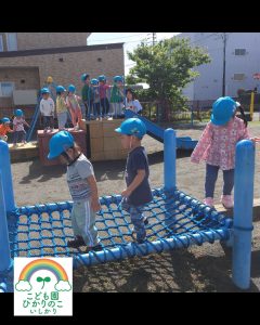 滑り台、アスレチック遊具でたくさん遊んだ後は水分補給で元気回復💪