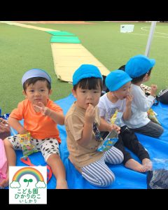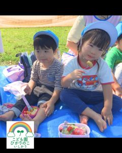 園庭に戻ってから、楽しみにしていたお弁当タイム😍