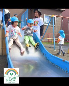 滑り台、アスレチック遊具でたくさん遊んだ後は水分補給で元気回復💪