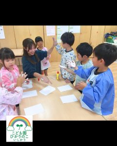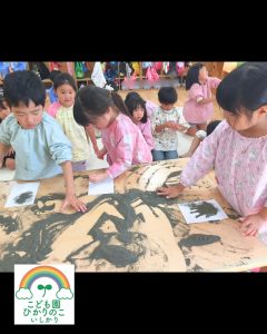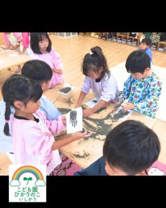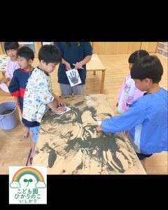 年長児クラスのみんなで集めた貝殻を使って共同制作に取り組みました✨